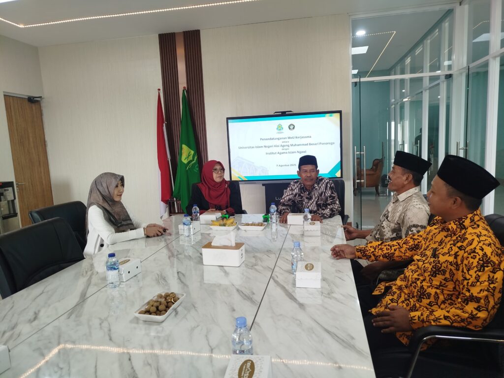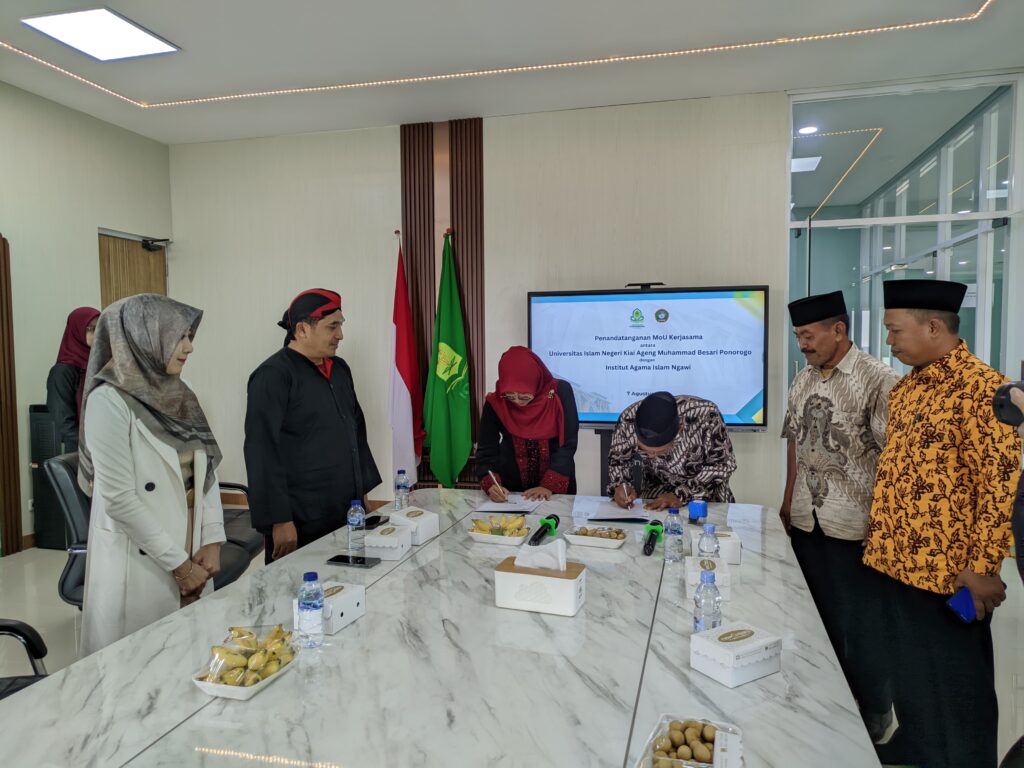 Pascasarjana Institut Agama Islam (IAI) Ngawi resmi menandatangani Nota Kesepahaman (MoU) dengan Universitas Islam Negeri (UIN) Kiai Ageng Muhammad Besari Ponorogo pada Kamis, 7 Agustus 2025. Kegiatan ini berlangsung dalam suasana penuh semangat kolaboratif, menandai awal kemitraan strategis antar dua institusi pendidikan tinggi Islam dalam pelaksanaan Tri Dharma Perguruan Tinggi.